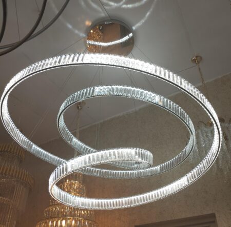 Com dimensões de 150×65CM, este pendente é ideal para espaços amplos, como salas de jantar, halls de entrada, áreas gourmet ou ambientes comerciais que exigem iluminação de destaque. Assim sendo, ele não apenas ilumina com eficiência, mas também se apresenta como um elemento decorativo central, agregando requinte e estilo ao ambiente.