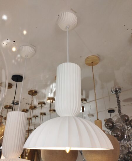 Pendente em Metal Branco e Gesso com Design Contemporâneo