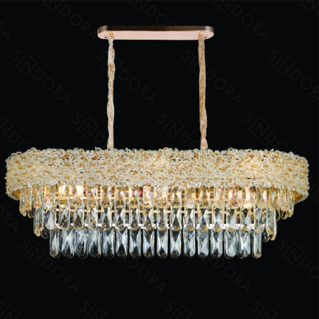 Sua estrutura em metal dourado assegura resistência e longa vida útil, enquanto os cristais mantêm o brilho. Por isso, esta peça é ideal para salas de jantar, halls de entrada, recepções e outros ambientes onde a iluminação deve ser protagonista.