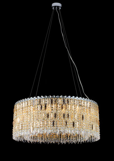 À primeira vista, o acabamento dourado transmite luxo e sofisticação, enquanto os cristais garantem leveza e brilho na medida certa. Essa combinação de materiais, portanto, resulta em um equilíbrio visual elegante, que enriquece tanto ambientes clássicos quanto modernos. Consequentemente, o pendente se destaca como peça protagonista em salas de jantar, halls, escadas ou ambientes corporativos de alto padrão.