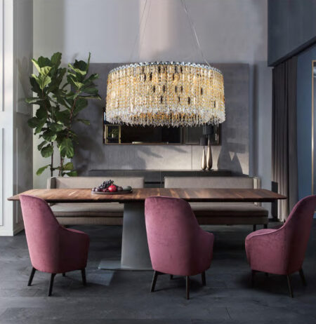 O Pendente em Metal Dourado com Cristal é a escolha ideal para quem deseja aliar sofisticação, iluminação intensa e design marcante em um único elemento decorativo. Com proporções generosas e acabamento refinado, ele transforma qualquer ambiente, adicionando brilho, elegância e personalidade. Além disso, sua estrutura robusta e visual impactante o tornam uma peça central em projetos de interiores que valorizam a estética e a funcionalidade.