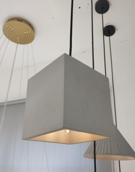 Desde o primeiro contato, a união da estrutura metálica com o concreto cria um visual autêntico e cheio de personalidade. Assim, o pendente se torna um elemento de destaque, perfeito para ambientes que desejam um toque de estilo industrial contemporâneo.