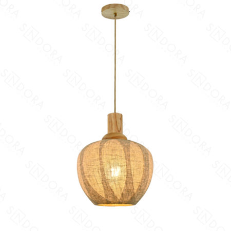 Pendente Madeira e Vidro com Linho Palha 23×20×30CM – SINDORA DCD04134