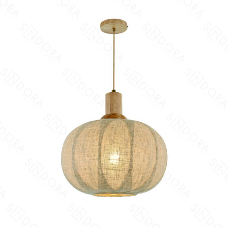 Pendente Madeira e Vidro com Linho Palha 30×20×30CM – SINDORA DCD04135