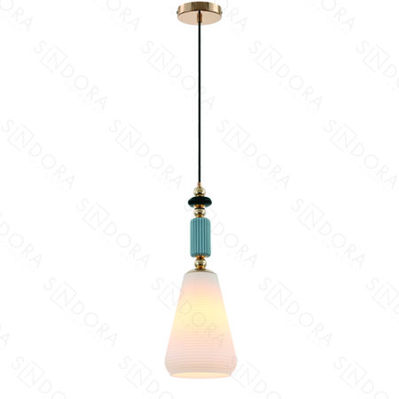 Pendente Metal Dourado com Vidro Branco e Cerâmica 16×45CM – SINDORA DCD04110