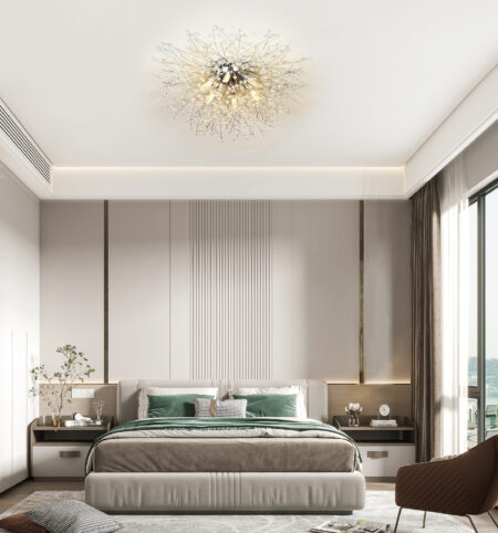 Desde o primeiro olhar, a combinação do metal cromado com o cristal cria um efeito luxuoso e contemporâneo. Assim, o plafon se torna o ponto focal da decoração, valorizando o espaço e agregando personalidade. Consequentemente, ele se destaca em projetos que buscam modernidade, elegância e presença visual.